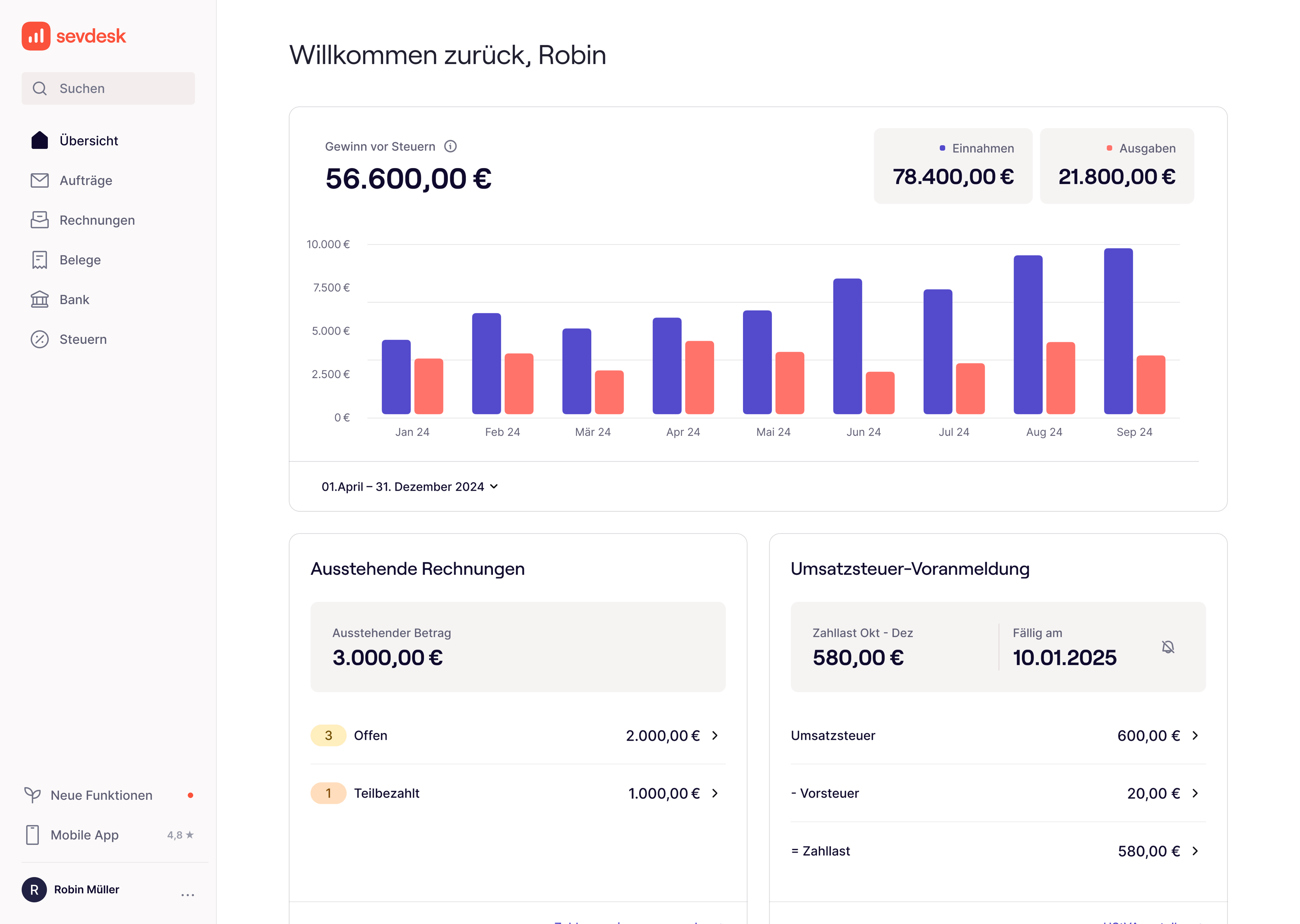 Während deiner kostenlosen Testphase stehen dir alle Funktionen von sevdesk zur Verfügung. Es gelten die AGB & Datenschutzerklärung.